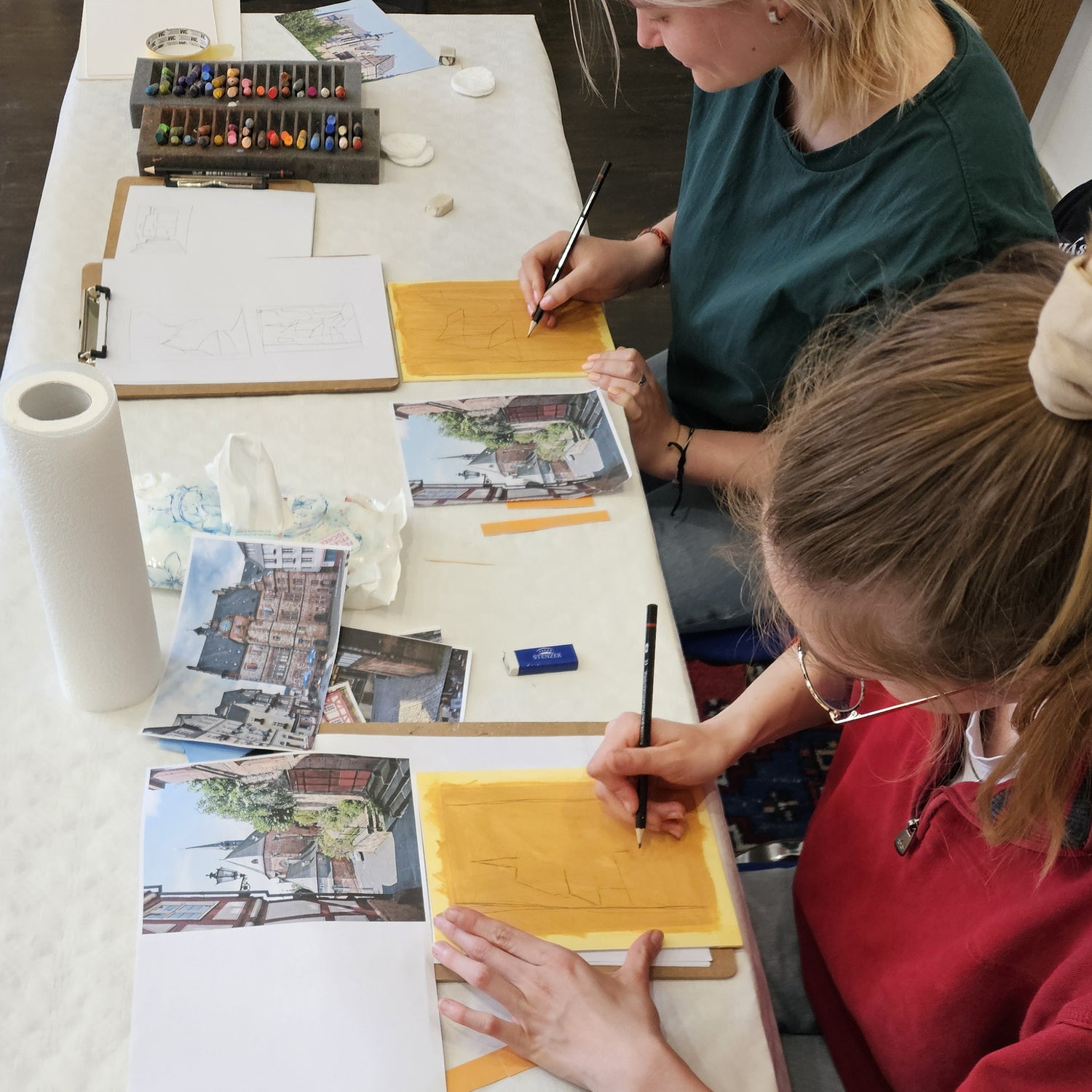 Gemeinsam gestalten wir Schritt für Schritt lebendige Stadtlandschaften mit Ölkreide nach fotografischen Vorlagen. Wir, Saeideh Keshavarz und Majid Saberinejad, begleiten Dich persönlich durch den gesamten Prozess – von der ersten Skizze bis zum fertigen Bild. Die Materialien sind im Workshop enthalten.