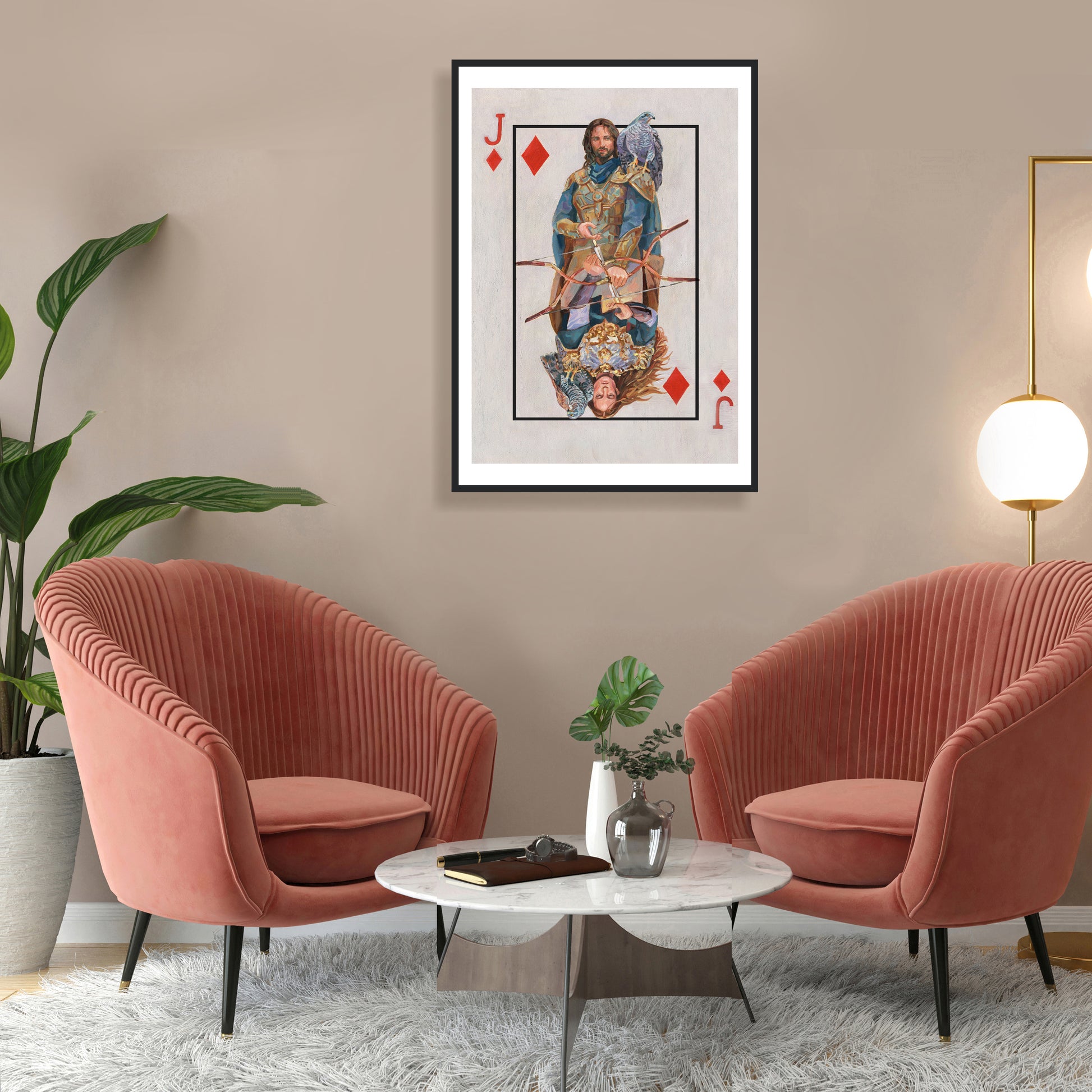 Karo Bube, Spielkarte, Handgemaltes Originalbild mit Öl